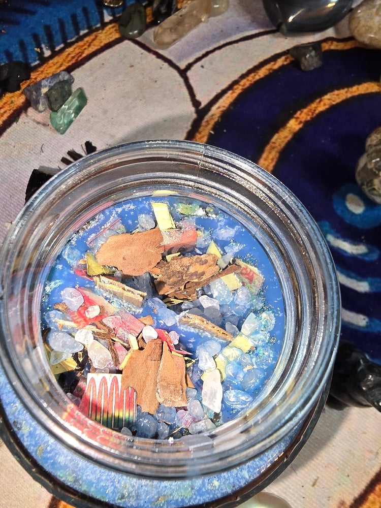 IF DURING THE SPELL PROCESS A BLUE FLAME IS SEEN PLEASE WATCH THE CANDLE.BEST USED IN ENVIRONMENT AWAY FROM FLAMMABLE OBJECTS.THIS CANDLE IS REALLY POWERFUL. DUE TO ITS HIGH POTENCY OF CELESTIAL ENERGY IT HAS THE TENDENCY FOR THE GLASS TO SEVERE/SHATTER WHILE THE SPELL IS IN PROGRESS. PLACE CANDLES IN BOWL/GLASS Container OF ROOM TEMP WATER to help prevent the glass candle container from shattering/exploding.